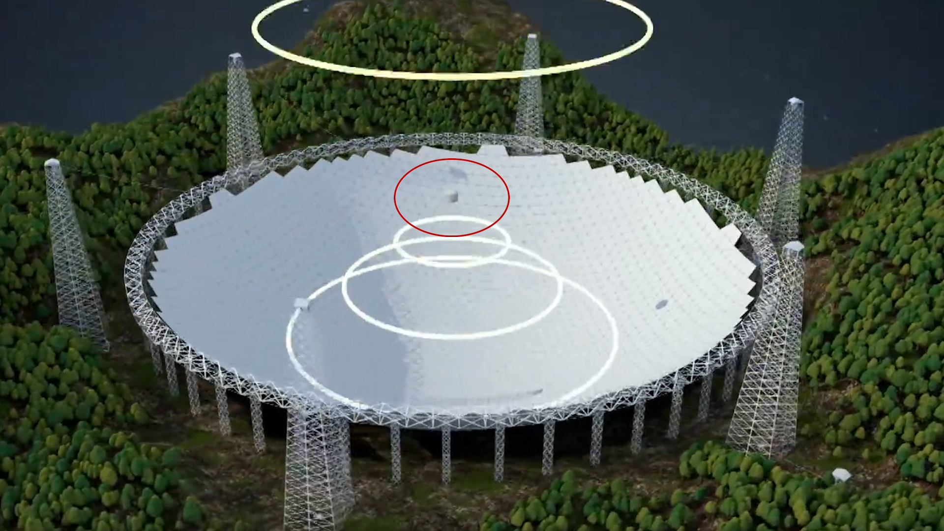 工作原理:當它觀測天體時,會隨着天體的方位變化,在其500米的球冠狀主動反射面上實時形成一個300米直徑的瞬時拋物面,並通過這個300米的拋物面來匯聚電磁波。